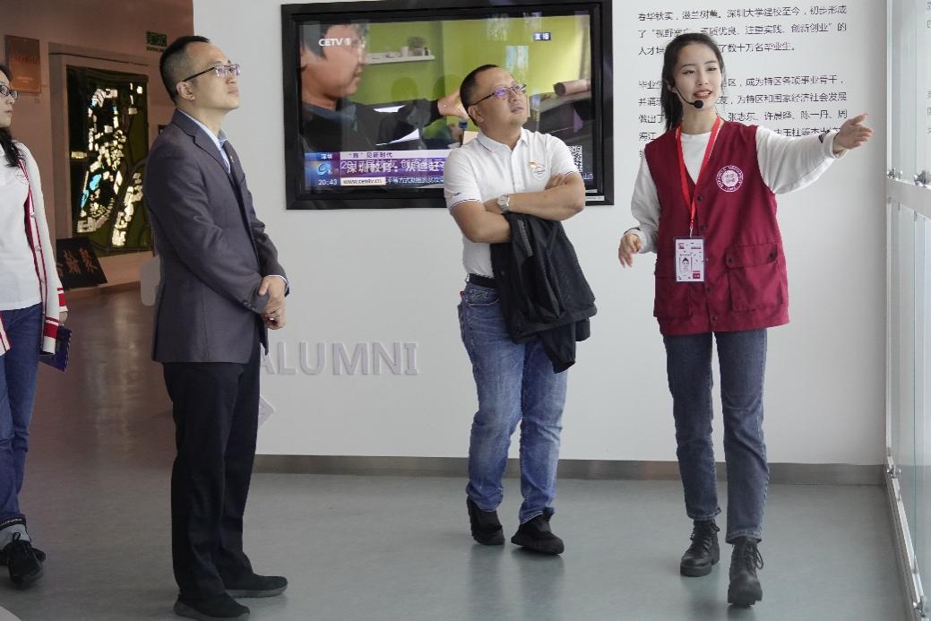 座谈会结束后,在刘海山书记的陪同下,双方与会代表共同前往深圳大学校史馆进行参观,对深圳大学的发展历程和近期现状进行了更加充分的认识。刘海山书记表示,深圳大学今年迎来40周年校庆,向微众银行以及社会各界对学校、学院的发展以及校庆活动的关心和支持表示感谢。