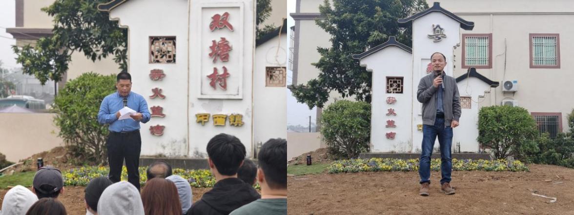 活动伊始,郑俊腾代表甲西镇党委宣读《绿美行动倡议书》,号召各级党组织、党员干部应筑牢思想根基,凝聚组织力量,树立先锋旗帜,在乡村绿化一线作表率,推动新一轮乡村绿化工作取得更好成效。张建华代表深圳大学师生党员发言,提出本次活动既是师生参与劳动教育的实践课堂,更是深大在“双百行动”框架下深化校地协作的创新举措,通过党建共建、资源共享,将生态帮扶融入驻镇帮镇扶村长效机制,为乡村振兴注入高校智慧。