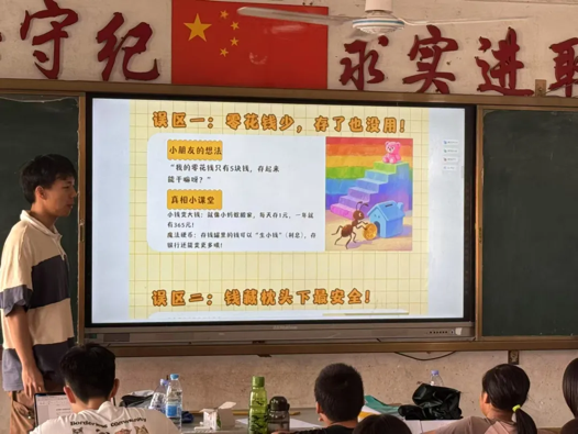 储蓄意识培养:通过互动讨论与真实案例,帮助学生建立“未雨绸缪”的理财观念。课堂上,孩子们踊跃分享“存钱计划”,气氛热烈温馨。