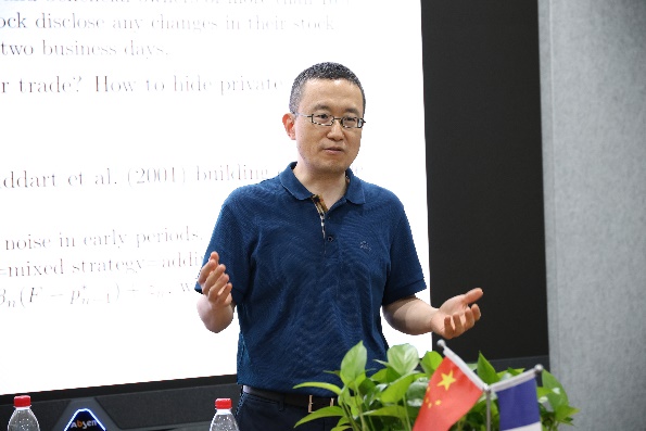 本次讲座中,杨立岩教授介绍了自己近期在金融市场、资产定价领域的重要研究成果。主要内容为:We analyze a dynamic model of a monopolistic insider who receives private information sequentially and faces a post-trading disclosure requirement. We show that characterizing the equilibrium in this trading game is isomorphic to solving a consumption-saving problem with a borrowing constraint. Analogous to the “consumption-smoothing” intuition in the consumption-saving literature, the insider in our trading game “smooths” his information usage over time given the dynamics of his private information. The insider would “dissimulate” his private information through mixed strategies if and only if sufficient information arrives early. Finally, we analyze the interpretation of mixed strategies and the value of commitment.