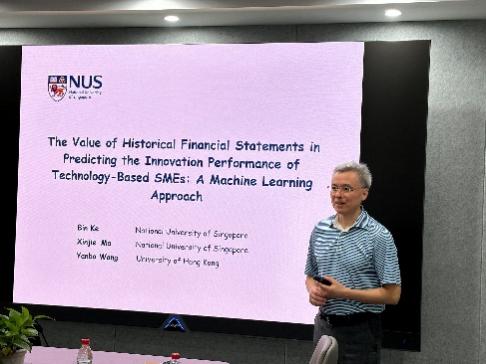 本次讲座中,柯滨教授介绍了自己近期在财务会计领域的重要研究成果。主要内容为:Utilizing a proprietary dataset of grant applications from technology-based SMEs to China’s Innovation Fund for Small Technology-based Firms (Innofund), this study evaluates the utility of historical financial statements for assessing SMEs’ innovation potential. Our findings demonstrate that an advanced XGBoost model, using 55 financial statement data items only, predicts innovation performance more effectively than an XGBoost model based on human experts’ evaluation scores of the entire grant application. Additionally, merging financial data with expert scores does not improve prediction accuracy, indicating no incremental value from expert discretion. Analysis of Shapley values highlights distinct evaluation criteria differences between human experts and the XGBoost model. Our results demonstrate the promise of leveraging advanced machine learning with historical financial data in aiding government grant agencies to identify SMEs with high innovation potential.