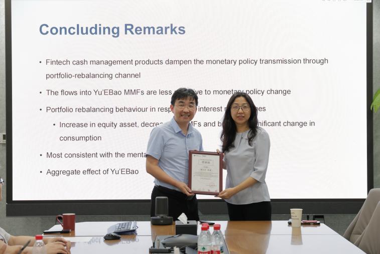本次讲座中,钱文澜教授介绍了其在金融领域的最新研究成果。随着金融科技的发展和智能手机的普及,电子钱包不仅支持即时交易,还提供带有金融回报的现金管理产品,因此越来越受到欢迎。通过使用来自全球最大的电子钱包提供商支付宝的独特数据集,我们发现,与没有支付功能的类似资产相比,余额宝(一种可用于支付的投资产品)的持有量受利率变动的影响较小。这种影响在依赖余额宝进行日常消费、支付高峰期或经验较少的投资者中更为显著。我们的研究显示,每降低一个百分点的利率,余额宝将零售资金流向风险较高资产的比例减少了7.7%,从而通过投资组合再平衡渠道减弱了货币政策的效果。