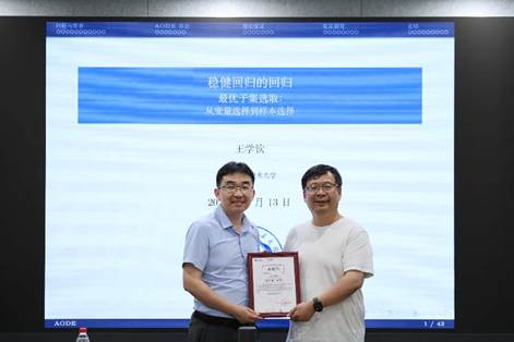 在报告中,王学钦教授从一个统计推断中的经典难题出发:如何在处理异常值的同时,保持参数估计的统计效率?他指出,传统的稳健估计方法——如Huber估计、MM估计或基于$l_1$惩罚的均值漂移模型——虽能在一定程度上抵御异常值影响,但由于采用软降权或收缩策略,不可避免地引入了估计偏差,也无法直接识别出哪些样本是异常值。针对这一困境,王教授团队创造性地提出了自适应异常值检测与估计(AODE)框架,将最优子集选取的思想从传统的变量选择拓展至样本选择。该框架采用$l_0$约束的均值漂移模型,其最引人注目的特性是实现所谓的“神谕重拟合”:一旦异常点被准确识别并剔除,对剩余干净数据的估计即等价于无偏的普通最小二乘法,从而达到了统计效率的理论上限。面对$l_0$优化带来的组合爆炸难题以及多异常值情形下产生的掩蔽效应,王教授团队引入了观测值层面的“块拼接”搜索算法,通过动态改变样本几何结构来确保全局最优性。同时,配合稀疏信息准则(SIC),该方法能够在几乎零额外计算成本的条件下自动确定异常值的比例。王教授还展示了该方法在UK Biobank临床数据上的实证结果。相比于现有主流方法,AODE在计算速度、支撑集(异常值集合)恢复精度以及预测可靠性方面均表现出显著优势,展现出在大规模真实数据场景中的强大应用潜力。
