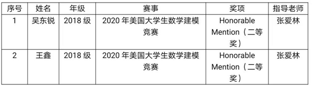 在指导老师张爱林的带领以及团队的配合下,两位同学发挥出色,展现了扎实的数学、计算机和英语论文写作功底,双双获得该竞赛Honorable Mention(二等奖)的优异成绩。