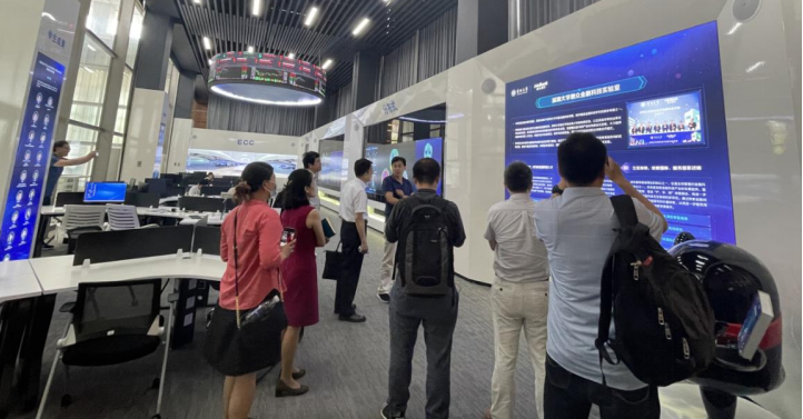 交流结束后,我院领导陪同参观了微众金融科技实验室,张凯院长介绍了目前实验室的运营情况。最后,双方领导都表示,希望在未来继续加强院校之间的合作交流,优势互补,在实验室建设、人才培养等多方面建立更深层次的合作。