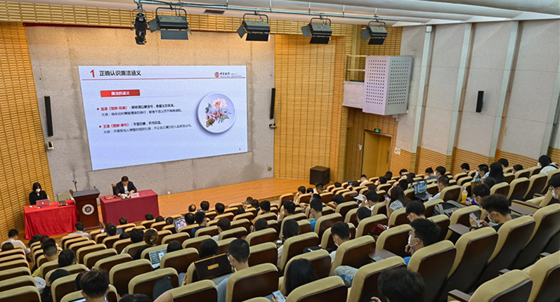 本次廉洁文化课,李进生书记从“正确认识廉洁涵义”、“廉洁文化源远流长”、“以案示警以案明纪”和“做新时代清正廉洁好青年”四个部分进行分享。