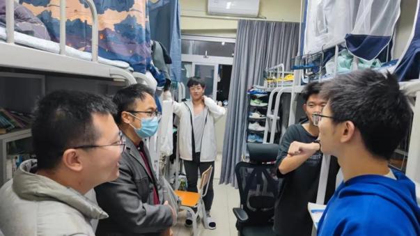 12月22日晚,刘海山副院长、辅导员以及尼娜、陈鑫、石洋、王立雯、林龑、祝赵波、祁涵等班主任老师分别到紫薇、红豆、乔香、乔森等宿舍楼看望学生。