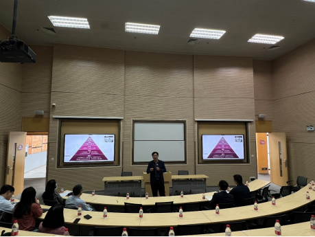 在中外合作办学工作总结部署环节,石东辉副院长作为法方代表做了报告。在师资保障上,法方已任命Stephane教授作为中外合作办学项目教学负责人,并且全球招聘法方专业课授课老师,突出学院中法合作的办学特色。在学生培养上,他指出学院中外合作办学的培养方针要围绕语言、学术、专业三个能力,开拓学生的国际视野,培养学生对交叉学科的学习能力,以及学术创新意识和批判性思维。除此之外,学院也将提供广泛的国际交流机会,组织不同形式的体育运动和社会活动,丰富学生的课余生活。