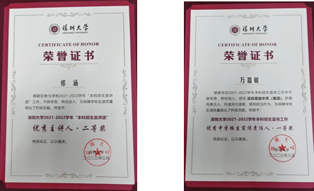 为鼓励更多老师加入招生宣传队伍中,招生办公室在大会上特地表彰了去年对学校招生工作作出的突出贡献的老师们,我院祁涵助理教授获得突出贡献奖,万嘉敏老师获优秀中学招生宣传责任人一等奖,林悦齐老师获优秀招生联络人。同时,我院对于招生工作的充分准备还获得了学校招生办的表扬。