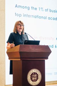 来自法国南特高等商学院的教授Myriam就商学院的百年发展历史,以及南特和深圳大学的合作情况开展介绍。