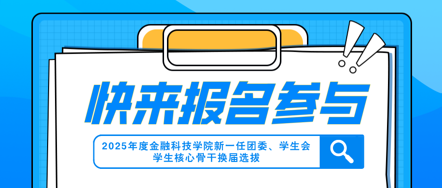金融科技学院团委、学生会是在学院党委领导、校团委指导下的“自我管理、自我教育、自我服务、自我监督”的先进学生组织,始终秉持“全心全意为学生服务”的宗旨,建设“有为、有力、有效、有情”的学生组织。为了配合学院2025-2026学年各项工作开展,强化团委、学生会组织建设,现决定公开遴选新一任金融科技学院团委、学生会学生核心骨干。