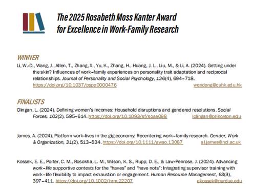 喜讯: 学院王洁欣助理教授的论文获2025 年“Rosabeth Moss Kanter Award”