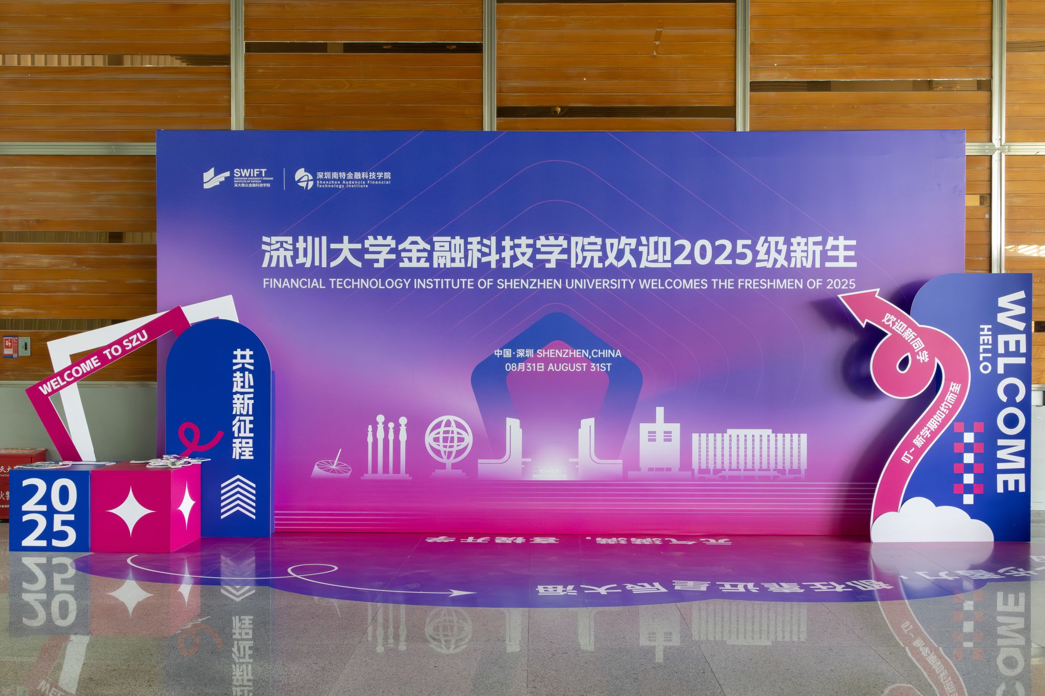 2025年8月31日,又迎来了一年一度的迎新日,来自五湖四海的新同学齐聚深大校园,正式开启了他们的大学生活新篇章。学院以饱满的热情和周到的服务,迎接了66位本科生、29位研究生的加入。还有4位留学生远道而来,共同书写属于金融科技学院的崭新故事。学院领导心系新生,党委书记刘海山、...